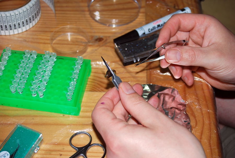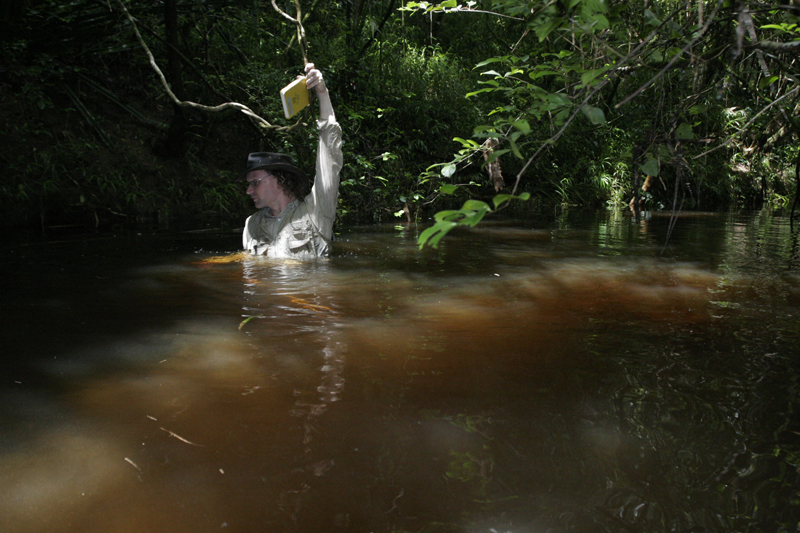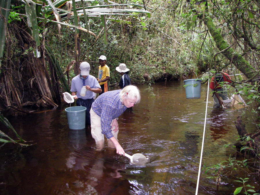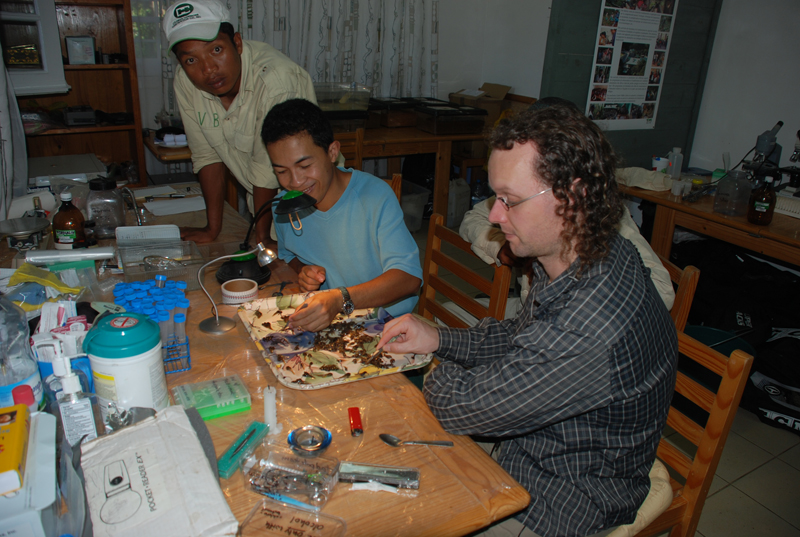 Wissenschaftliche Arbeit findet auf Madagaskar immer in Kooperation mit einer madagassischen Hochschule statt, und Arbeiten in Nationalparks werden immer von einheimischen Führern begleitet. So bestand auch mein Team meist aus deutschen und madagassichen Kollegen, madagassischen Studierenden und Mitarbeitern der ValBio-Forschungsstation. Den Weg ins Feld haben wir meist zu Fuß angetreten; der Nationalpark verfügt über ein gutes Netz an Wanderwegen. Wir haben definierte Bachabschnitte beprobt: Kaulquappen, diverse Evertebraten und -larven (potentielle Räuber und Konkurrenten) sowie verschiedene Substratproben für Isotopenanalysen. Ebenso habe ich viele Habitatparameter des Baches und des umliegenden Waldes aufgenommen. Die Fließgewässer im Regenwald, so weit über dem Meeresspiegel, bergen zum Glück kein Risiko in Form von Bilharziose oder ähnlichem.